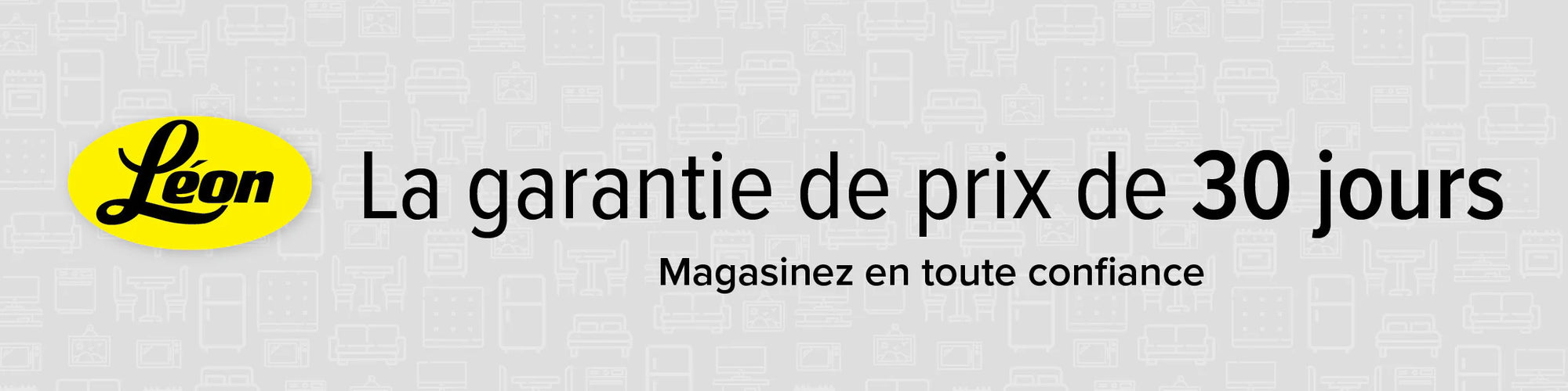 Chez Leon's Outlet Bathurst, vous n'achetez pas seulement un meuble ou un électroménager, vous achetez la tranquillité d'esprit ! Grâce à notre Garantie du meilleur prix de 30 jours, vous pouvez magasiner en toute confiance : si vous trouvez la même marque et le même modèle, actuellement affichés par Leon's ou un détaillant canadien autorisé, à un prix inférieur dans les 30 jours suivant votre achat, nous vous remboursons la différence. Il vous suffit de nous présenter une preuve du prix inférieur affiché, et nous le vérifierons pour vous.